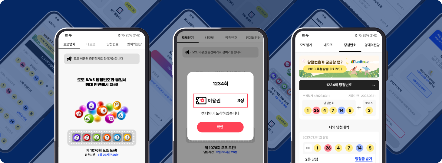 모또번호를 발급할 수 있는 회차별 이용권을 획득할 수 있어요